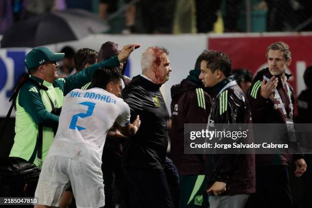Aguirre was left with blood pouring down his face when he was hit by the can as he approached opposing manager Reinaldo Rueda for a post-match handshake, after hosts Honduras won the first leg of their Nations League quarter-final 2-0.