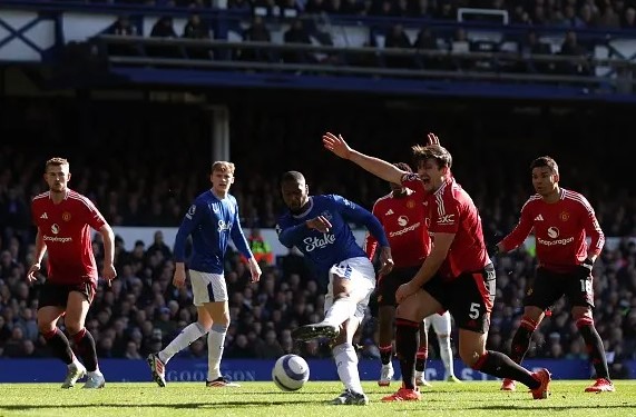 The second Everton goal was a desperate moment for United defender Harry Maguire, who failed to react with any urgency after Andre Onana saved Jack Harrison’s shot, allowing Doucoure to rise above him to head home.