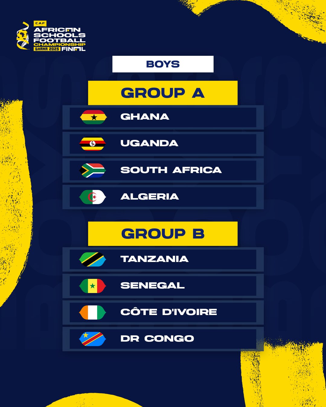 The final groups after the CAF African Schools Football Championships draw in Accra