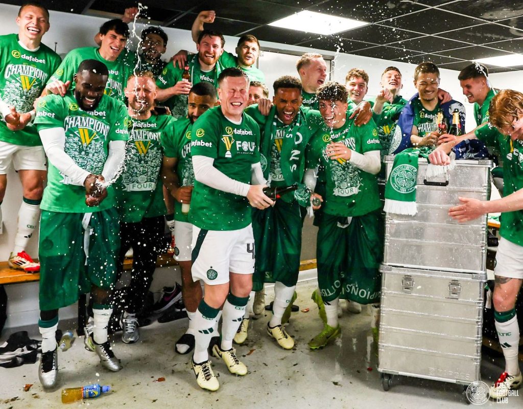 The team’s latest title win was confirmed after Brendan Rodgers’ team bagged a 5-0 win over Dundee United away from home.