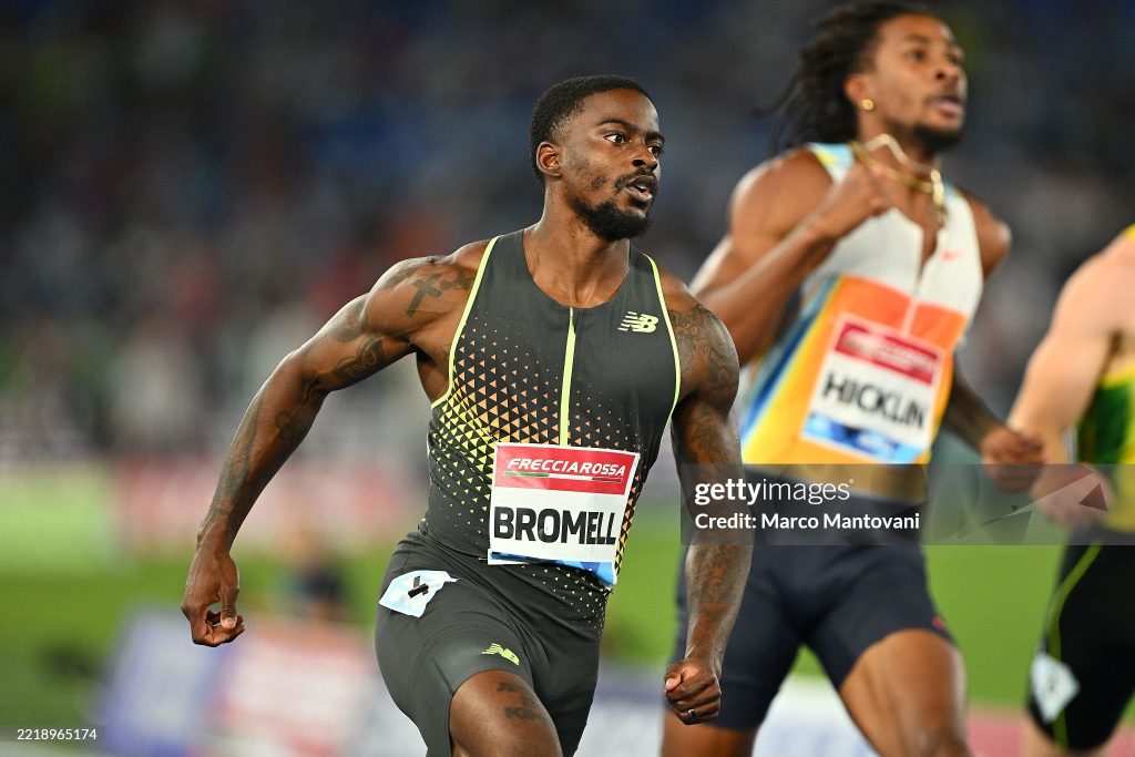 Trayvon Bromell of USA competes in Men’s 100m during the Golden Gala Pietro Mennea, part of the 2025 Diamond League at Stadio Olimpico (Photo by Marco Mantovani/Getty Images)