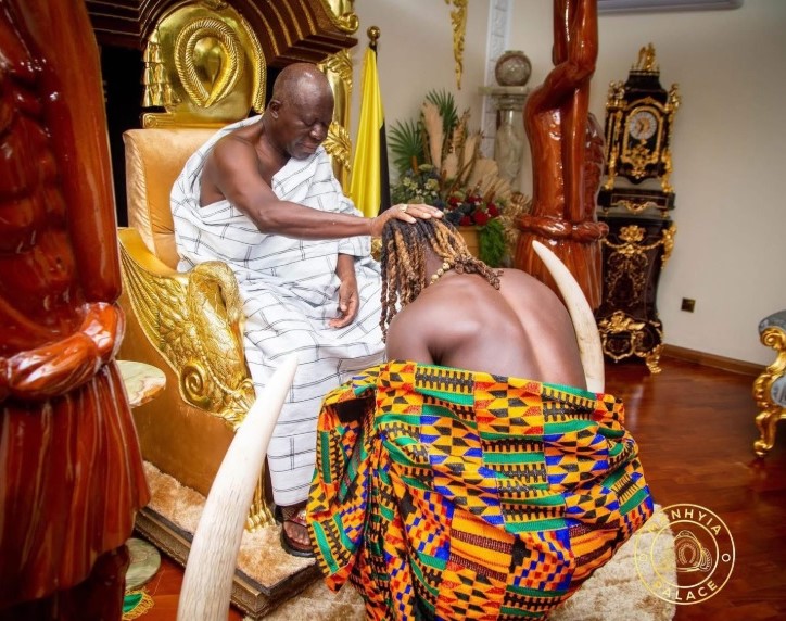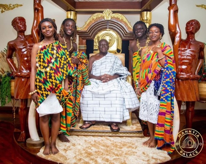 Doku and his entourage that included his parents and siblings paid their respect to the Asantehene after touching down in Ghana this past weekend.