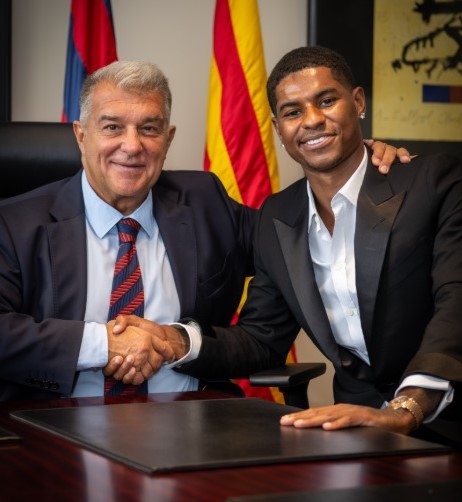 FC Barcelona President Joan Laporta (left) with Marcus Rashford Photo Courtesy: FC Barcelona