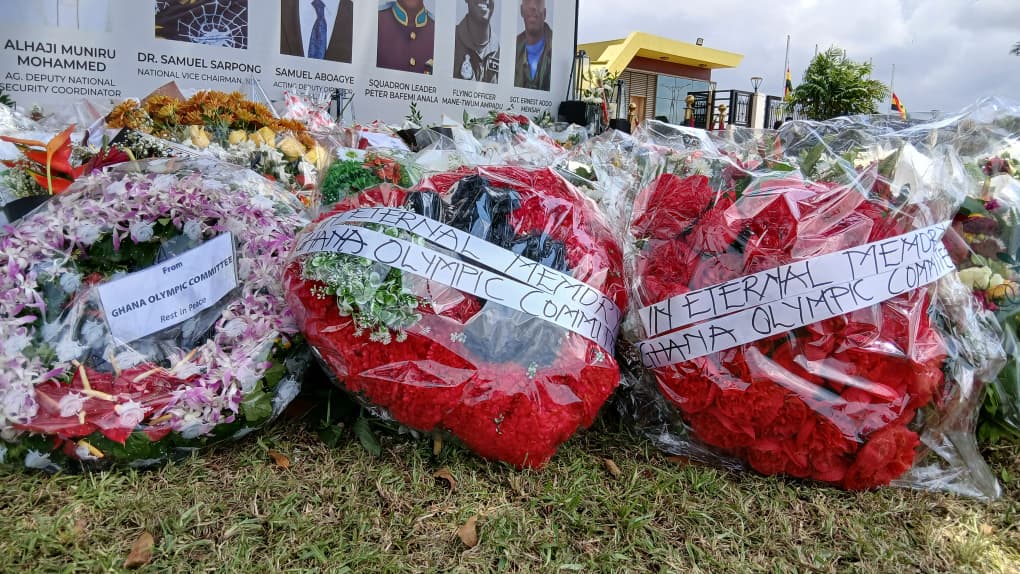 The Ghana Olympic Committee (GOC) today, August 11, 2025, laid a wreath in honour of the eight Ghanaians who tragically lost their lives in last week’s helicopter crash during a government anti-galamsey mission.