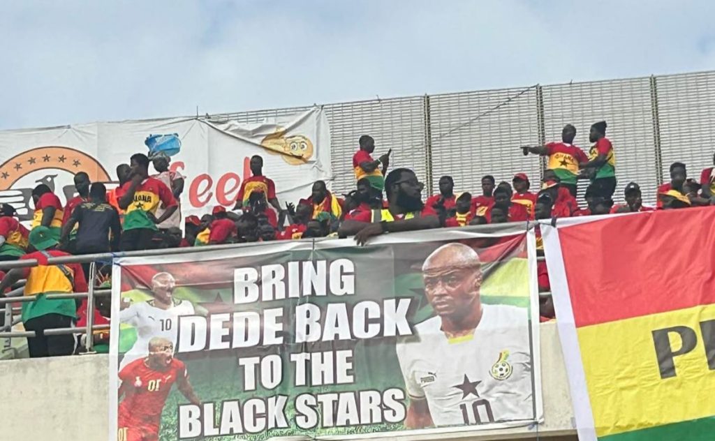 The Black Stars may have been on the pitch against Mali, but the loudest statement came from the stands. A banner hoisted by the supporters’ union, calling for the return of André “Dede” Ayew, lit up social media and radio discussions after security moved in to stop its display.