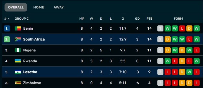 Scroll down to view a full breakdown of the standings in Group C ahead of South Africa’s games against Zimbabwe and Rwanda on October 10 and 14 respectively.