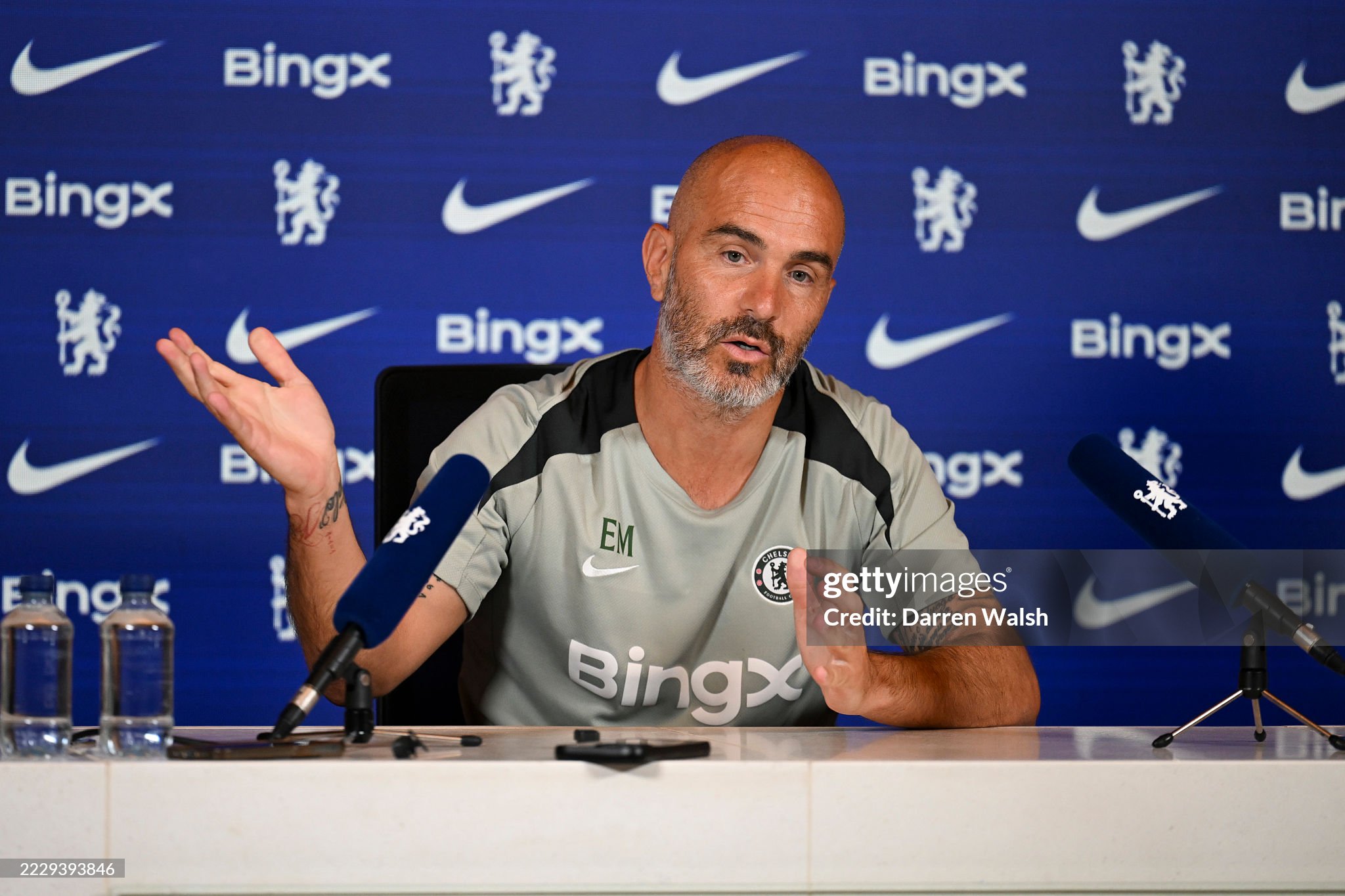 Head Coach Enzo Maresca of Chelsea attends a press conference (Photo by Darren Walsh/Chelsea FC via Getty Images)