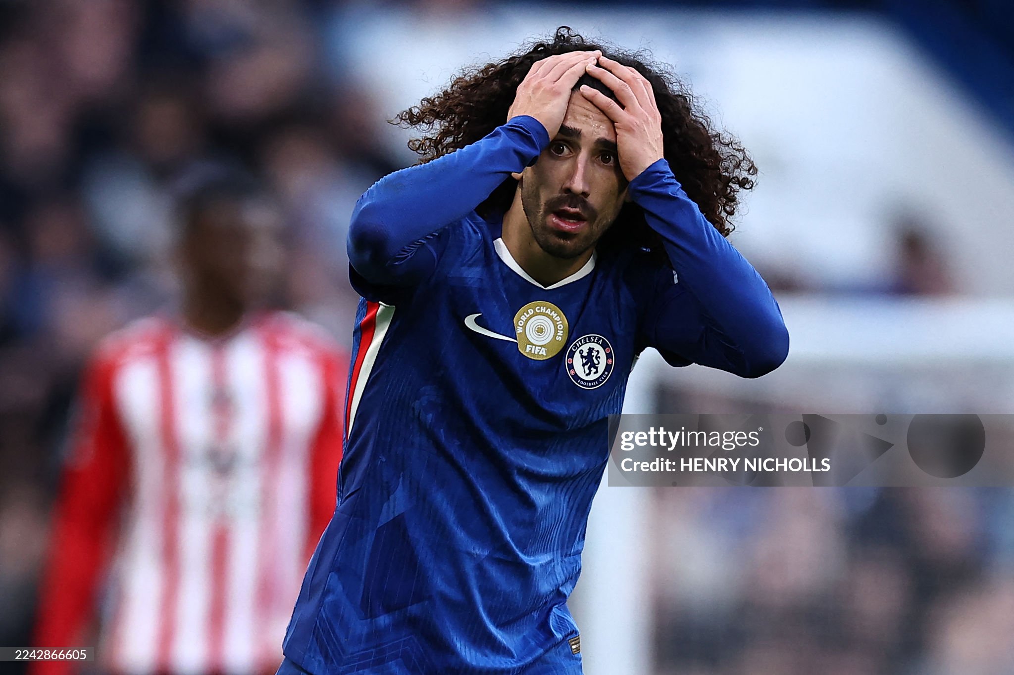 Chelsea's Spanish defender #03 Marc Cucurella reacts during the English Premier League football match between Chelsea and Sunderland (Photo by HENRY NICHOLLS/AFP via Getty Images)