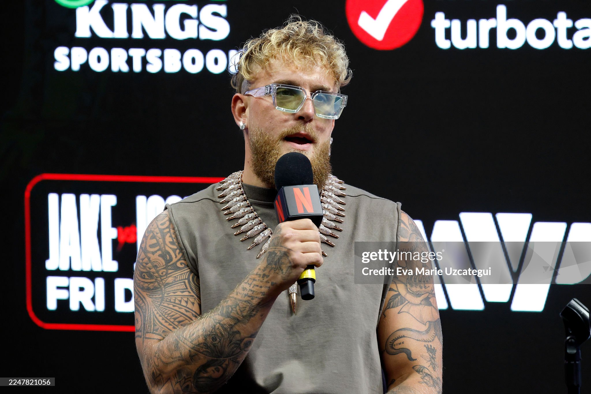 Jake Paul works out during the Jake Paul v Anthony Joshua – Fighter Showcase & Open Workout (Photo by Megan Briggs/Getty Images for Netflix)