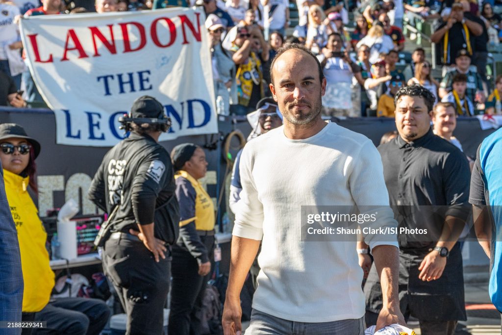 Landon Donovan prior to the prior to the MLS Cup Final between Los Angeles Galaxy and New York Red Bulls (Photo by Shaun Clark/ISI Photos/Getty Images)