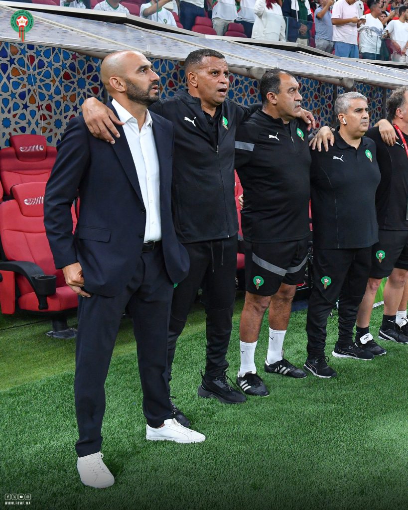 Morocco Head Coach Walid Regragui (extreme left) Photo Courtesy: EnMaroc on X