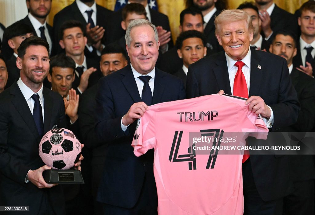 Messi, who is Inter Miami captain, handed Donald Trump a pink and black football representing Inter Miami’s colours and President Trump accepted the kind gesture and proceeded to state,