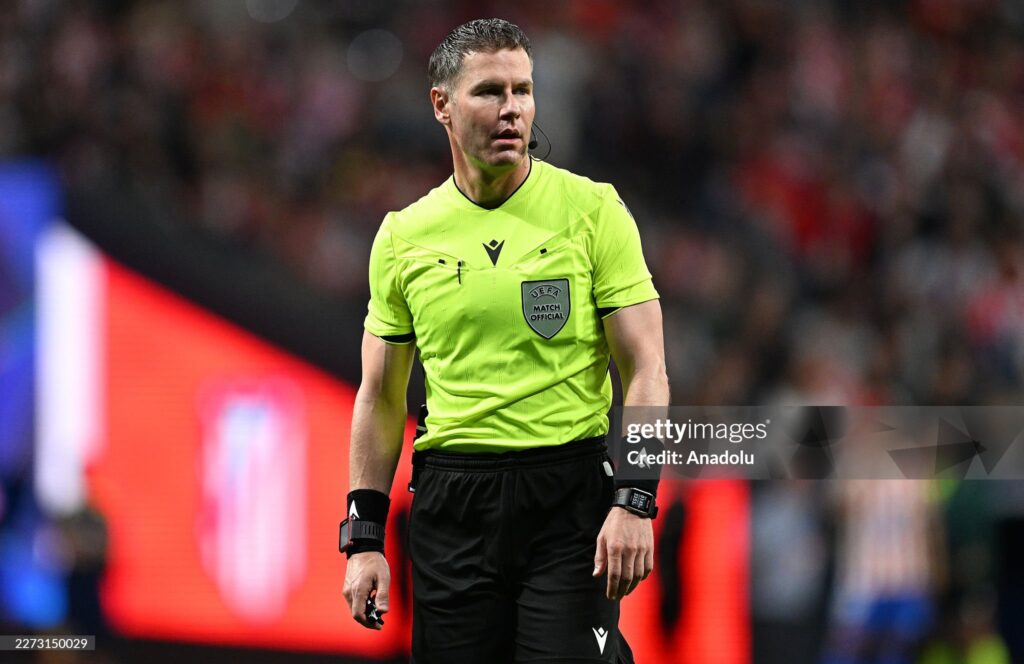 Referee Danny Makkelie is seen during the first leg of the UEFA Champions League semifinals match between Atletico Madrid and Arsenal (Photo by Burak Akbulut/Anadolu via Getty Images)